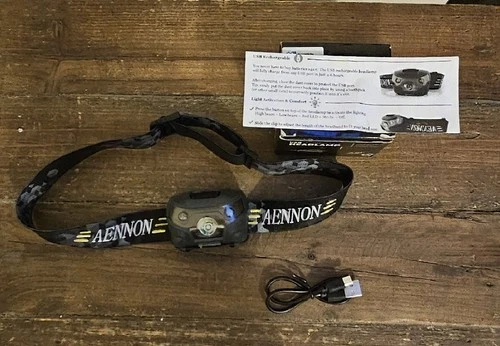 Aennon USB Rechargeable LED Headlamp - 220 Lumens - 4 Modes - With Box & Cable