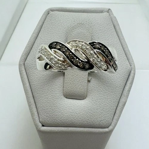 Affinity Diamond Ring size 9 Sterling Silver Cross Over Twist Champagne Brown