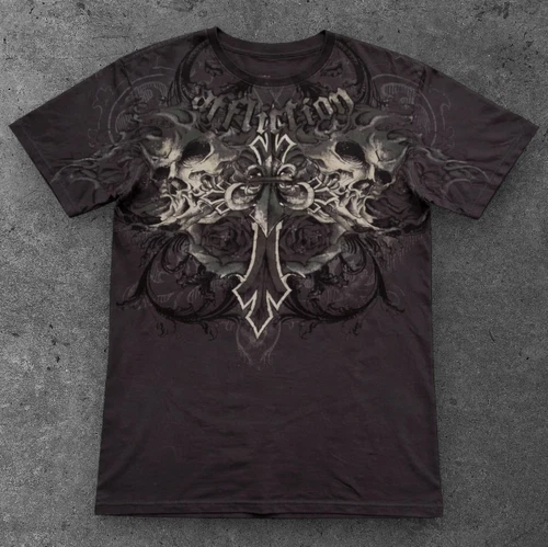 Mens Skull Rose Graphic T Shirt Black Punk Affliction Streetwear S-2XL