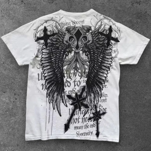 Mens Affliction Style Wings Oversized T Shirt White Grunge Streetwear S-2XL