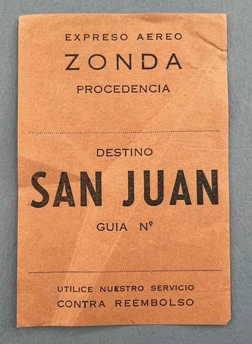 ZONDA SAN JUAN VINTAGE AIRLINE FREIGHT CARGO LUGGAGE BAGGAGE LABEL Z.O.N.D.A.