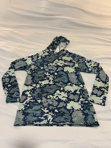AFTCO Hoodie Men's Blue Digital Camo Lightweight Fishing Pullover Size Large 197