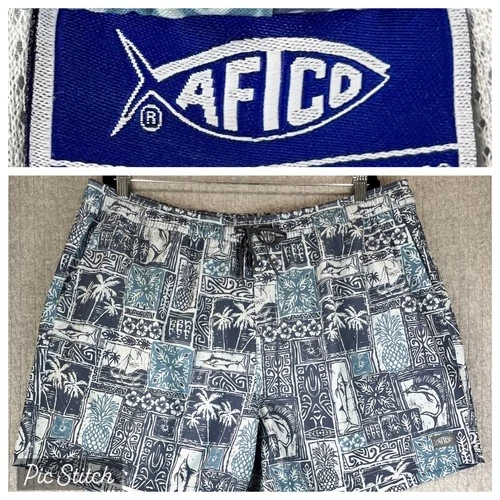 AFTCO new without tags Hawaiian Print Fishing Shorts Men 2XL tribal Swim Trunks