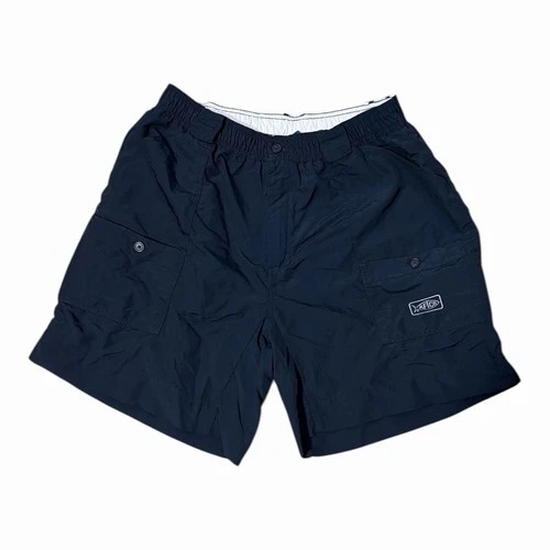 AFTCO Navy Fishing Shorts Elastic Waist Performance Cargo Lightweight Men’s