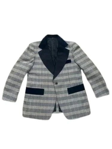 Vintage Sir Knight after Six Plaid Tuxedo Jacket Navy Satin & Velvet Trim - 44R