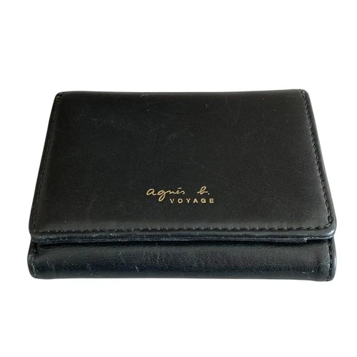 agns b. VOYAGE Leather Tri-Fold Compact Wallet in Black Women USED