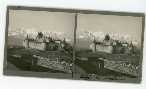 Stereo view PHOTO, EAGLE the castle Recto sided boat in port