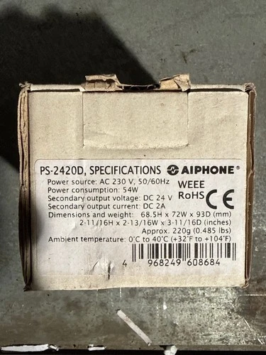 AIPHONE PS-242OD TRANSFORMER NEW 24V DC OUTPUT REF 1562/04