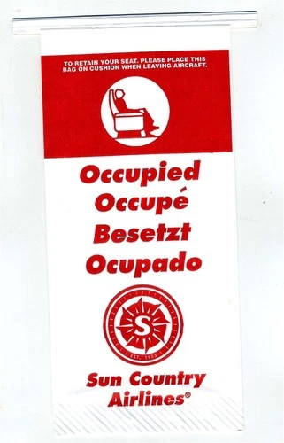 Sun Country Airlines Unused Seat Occupied / Air Sickness / Barf Bag