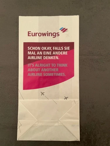 EUROWINGS AIR SICKNESS BAG, VOMIT BAG, PUKE BAG, SPIT BAG, BARF BAG