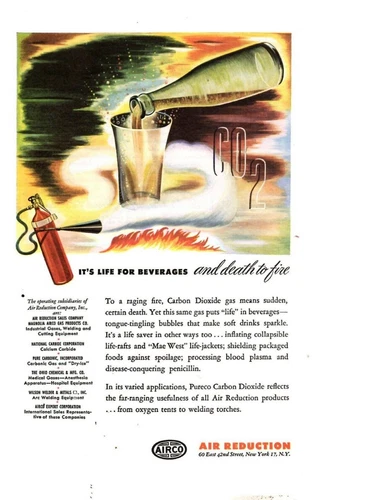 1946 Airco Air Reduction Print Ad CO2 It's Life for Beverages & Death for Fire