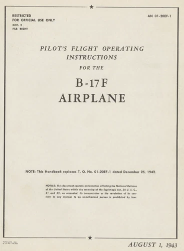 Boeing B-17F Flying Fortress 1940's WW2 Pilot Manual Rare archive PDF on CD