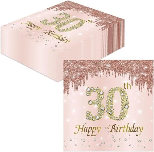 Napkins 30th Birthday Pink Gold Happy Birthday Decorations Table Decorations Party