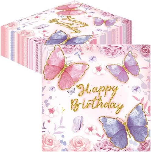 40th Birthday Napkins Butterfly Party Decorations 33x33cm Pink Girls Cake