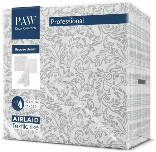 Airlaid Napkins 40x40cm Pack of 50 Fabric Similar Baroque Silver Design