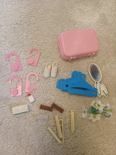 Various Random Vintage Sindy Bedroom Accessories Coathangers, Radio Alarm Clock