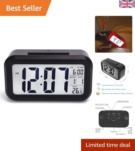 Sleek Black Digital Alarm Clock: Big Bright Display & Snooze Feature Included