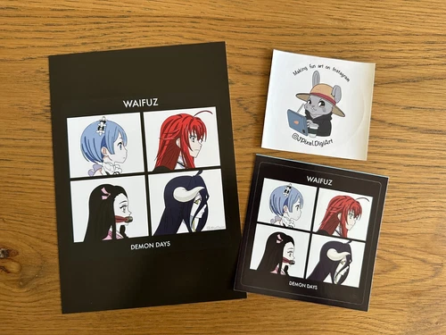 Anime Waifu Rem Rias Nezuko Albedo - A5 Art Print + Vinyl Sticker JPixel DigiArt