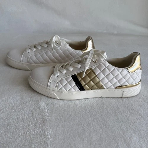 Aldo Womens Sneackers 7 White Gild Black Quilted Diamond Pattern Tennis Shoes