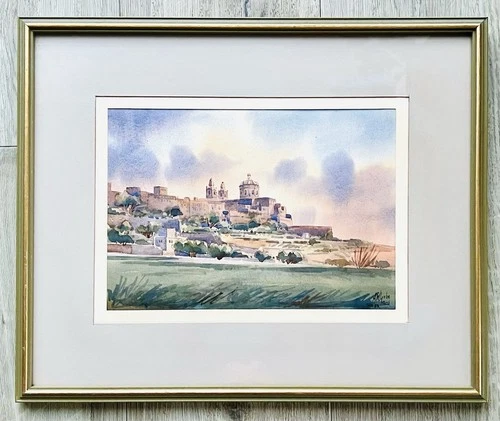 Aldo M Galea Signed 1984 Malta Watercolor - Mdina "The Silent City" Landscape