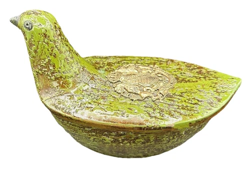 Vtg Rimini Bittosi Italian Pottery Green Bird Dove Aldo Londi Covered Bowl MCM