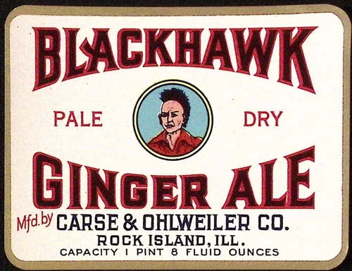 Vintage Blackhawk Pale Dry Giner Ale Carse & Ohlweiler Co Rock Island IL Label