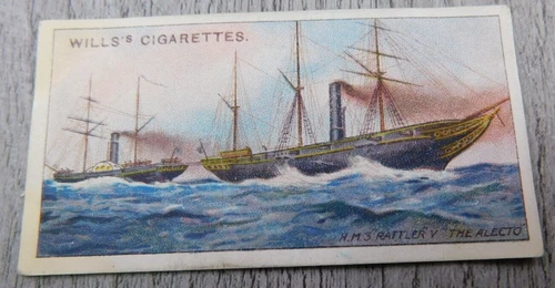 Wills's Celebrated Ships Cigarettes Tobacco Trade Card No 21 HMS Rattler Alecto