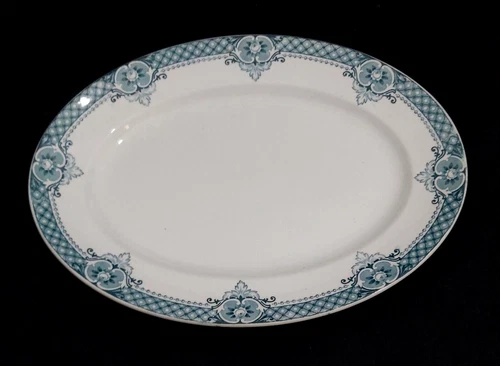 LARGE ANTIQUE BLUE & WHITE ENGLISH C.W.S. CO-OP PLATTER IN FAIRLY GOOD CONDITION