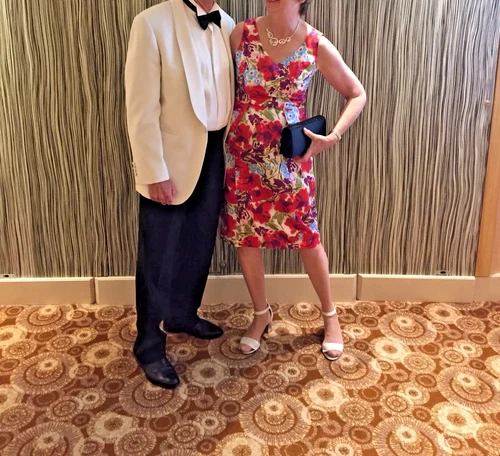 Ladies Alexon Cotton Sateen Red/Blue Floral Smart Dress Size 14