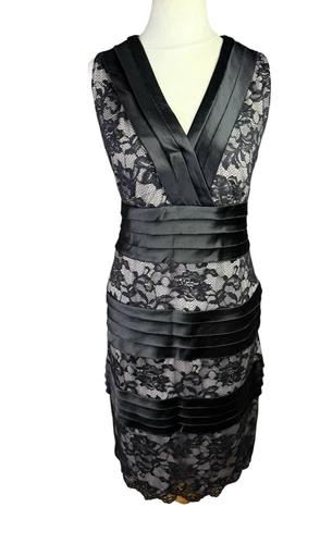 Alexon Black Floral Lace Dress Women's UK 16 V-Neck Sleeveless Xmas Party