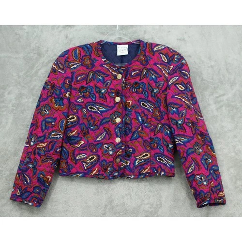 Vintage Alexon Jacket Womens 10 Pink Quilted Paisley Wool Button Boho Artsy Pink