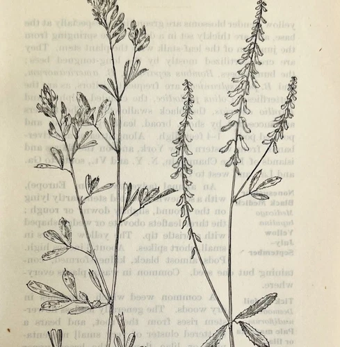 1905 Alfalfa Yellow Melilot Wild Flower Print Pen & Ink Lithograph Antique Art