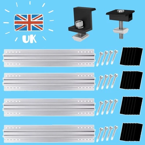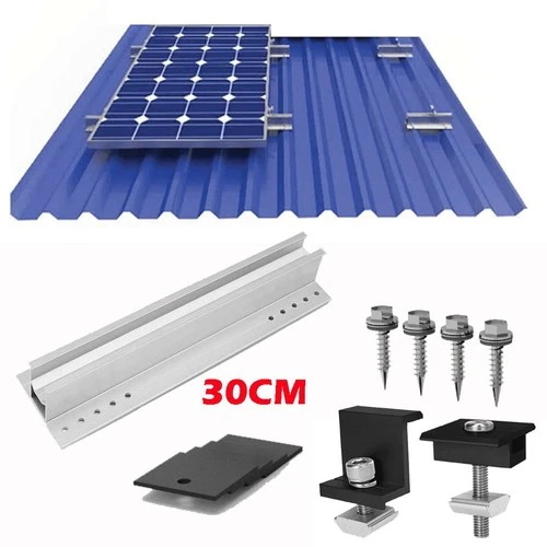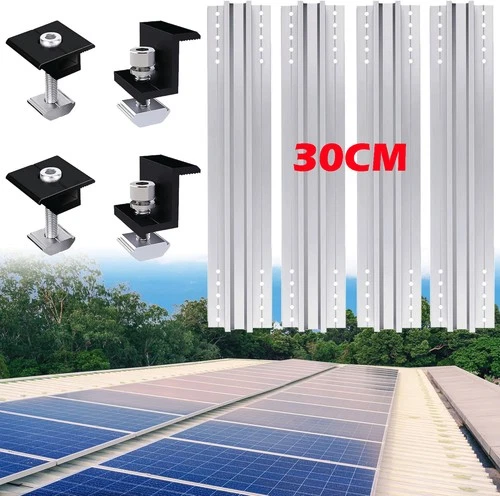 30cm Aluminium Solar Panel Roof Mounting PV Rail Brackets End/Middle Clamp Kit