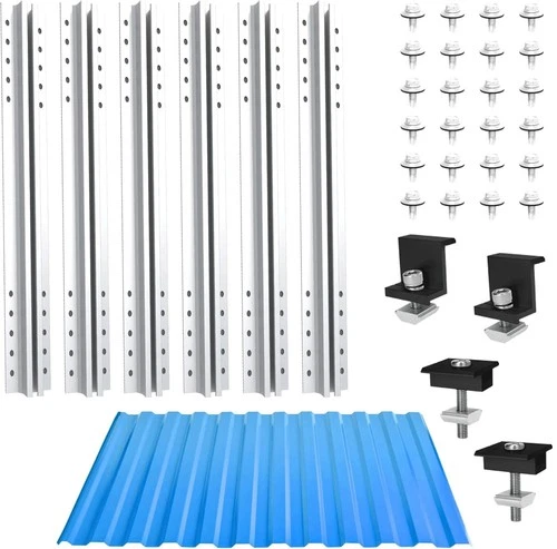 Aluminium Solar Panel Roof Mounting PV Rail Brackets End/Middle Clamp Fixing Kit