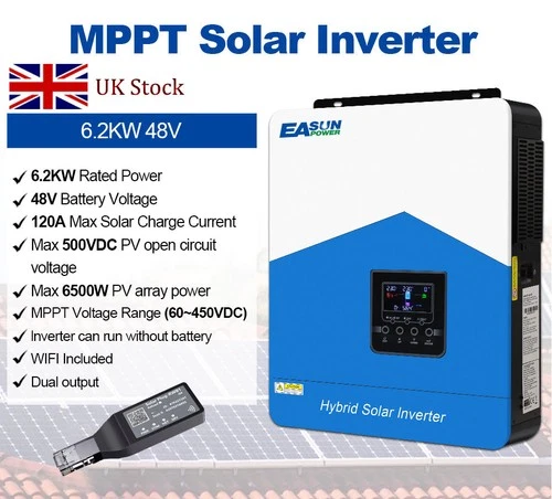 Hybrid 6.2KW Solar Inverter Off Grid 48V 120A MPPT Charge Controller Wifi UK