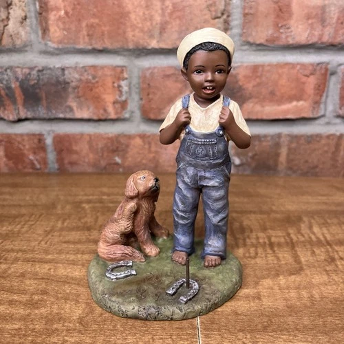 Miss Martha Holcombe All Gods Children Figurine #1653 Henry With Dog Horseshoes