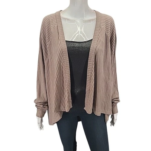 AnyBody Womens Dressy Brushed Rib Hacci Cocoon Cardigan X-Large Size Brown Top