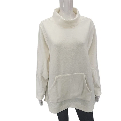 Denim Co Fleece Mock Neck Long Sleeves Pullover Petite 2XP Plus Size Off White