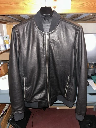 AllSaints Men's Leather Bomber Jacket Size Large