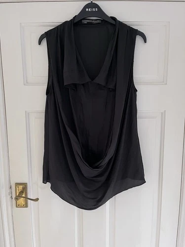 AllSaints Spitalfields Women’s Black Draped Top, Japanese Cloth, Size 8