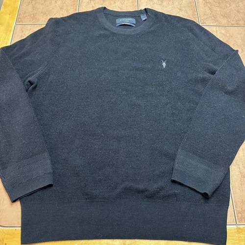 All Saints 100% Merino Wool Crew Neck Black Lightweight Sweater Men’s Size XL