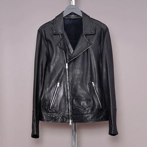 ALL SAINTS Leather Jacket Mens MEDIUM Black Biker Bomber Celebrity Grail RIO