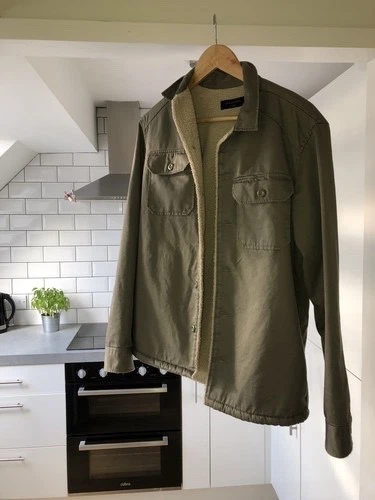 All Saints Men's Green 'PARIS' Shearling Lined Over Shirt Extra Small XS