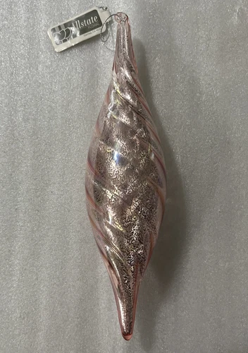 Allstate Floral Pink 10.5" Iridescent Twirl Glass Finial Ornament Rainbow Lustre