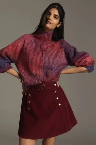 By Anthropologie Ombré Popover Turtleneck Sweater Seamed Crop Knit XXS