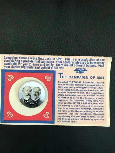 Parker Davis – Reproduction 1904 Presidential Campaign Button – 1972 - Bx mr6