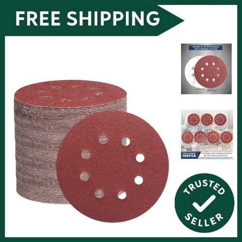 105PCS 125mm Sanding Discs, 5 Inch 8 Hole Hook and Loop Sanding Pads for Rand...