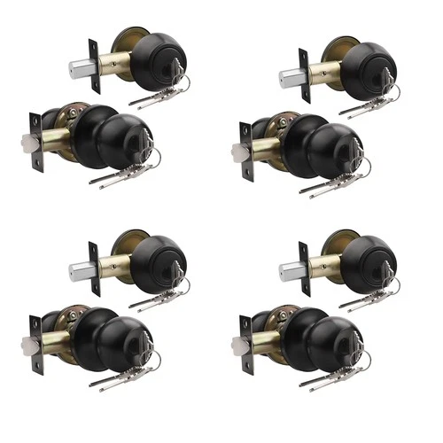 Exterior Door Knob Keyed Alike One Sided Deadbolt Matte Black 4 Pack