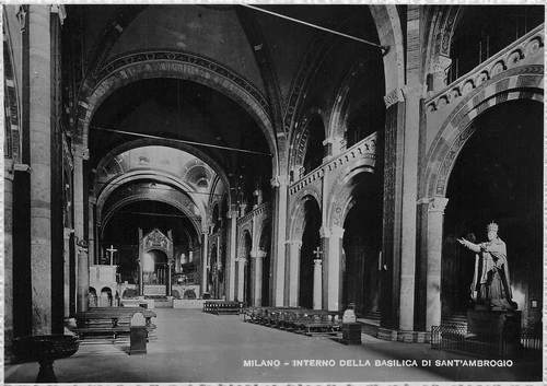 MILAN BASILICA OF S. AMBROGIO - BLACK AND WHITE POSTCARD NEVER SHIPPED