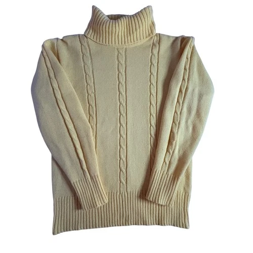 Amcrest Yellow Cable Knit Turtleneck Sweater Women's Size 16 Acrylic Vintage